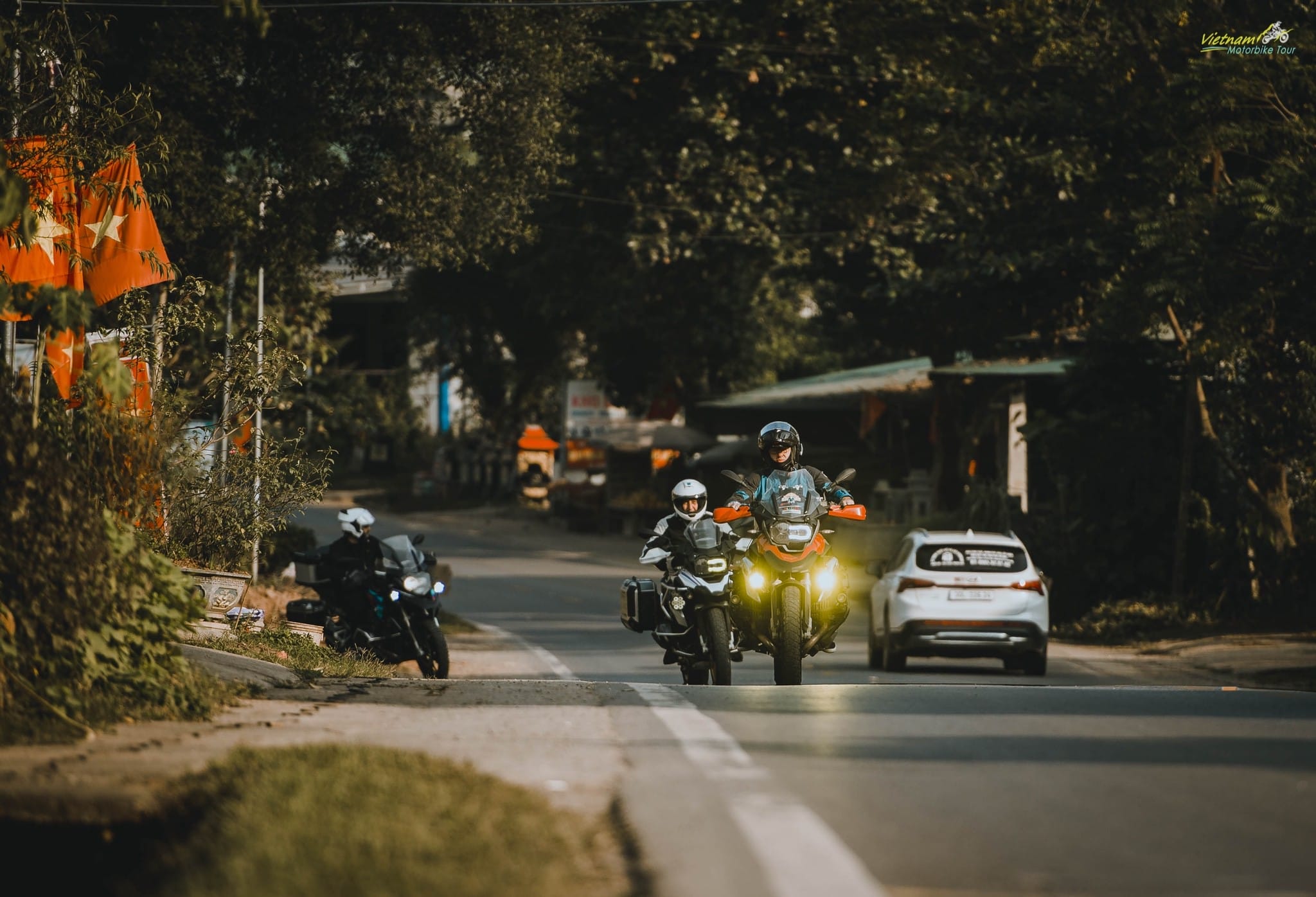 The morning begins with excitement as you mount your Honda CB500X or BMW GS1250 and ease out of the city. Soon the urban chaos dissolves into open countryside, where rice paddies stretch under the sun and farmers in conical hats tend the fields. The big bike purrs effortlessly on smooth tarmac, and within hours you find yourself beneath the canopy of Nam Cat Tien National Park. Lunch at a local lodge introduces you to organic flavors sourced from the forest itself. In the afternoon, you’ll hike shaded trails, spotting rare birds or listening to gibbons calling from treetops. Dinner is a rustic spread of jungle herbs, grilled fish, and fresh fruit, taken at a riverside eco-lodge. As night descends, the forest hums with cicadas—a natural symphony marking your first night of adventure.