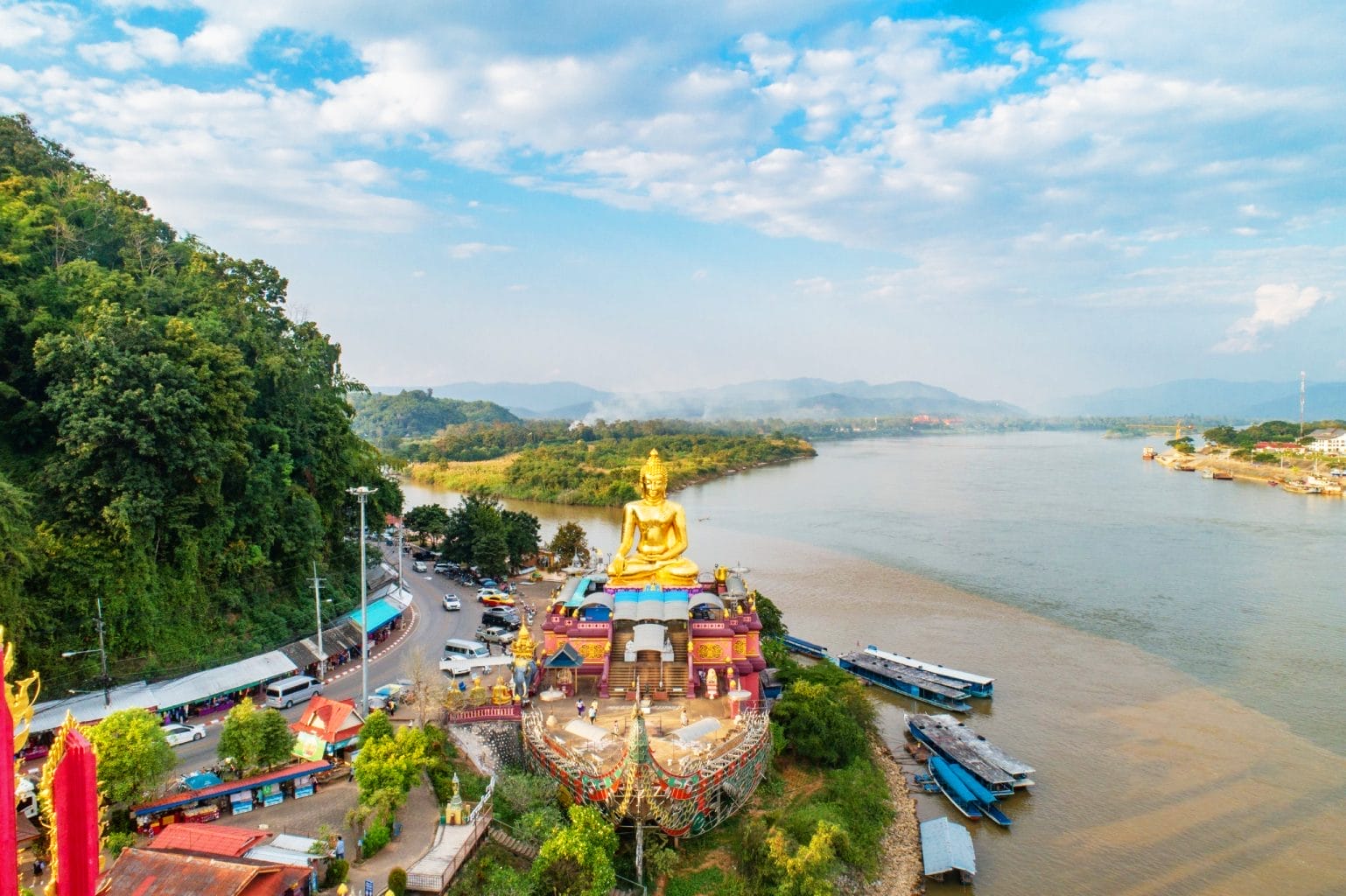 Today’s journey takes you to the iconic Golden Triangle, where the borders of Laos, Thailand, and Myanmar converge. Leaving Houay Xai, you’ll follow the Mekong River as it winds through a stunning landscape of mountains and forests. The ride to Xieng Dao offers incredible views of the river and the distant hills of Myanmar. After a brief stop in Xieng Dao, a small border town, continue on to Xiengkok, a tranquil trading hub along the Mekong.
