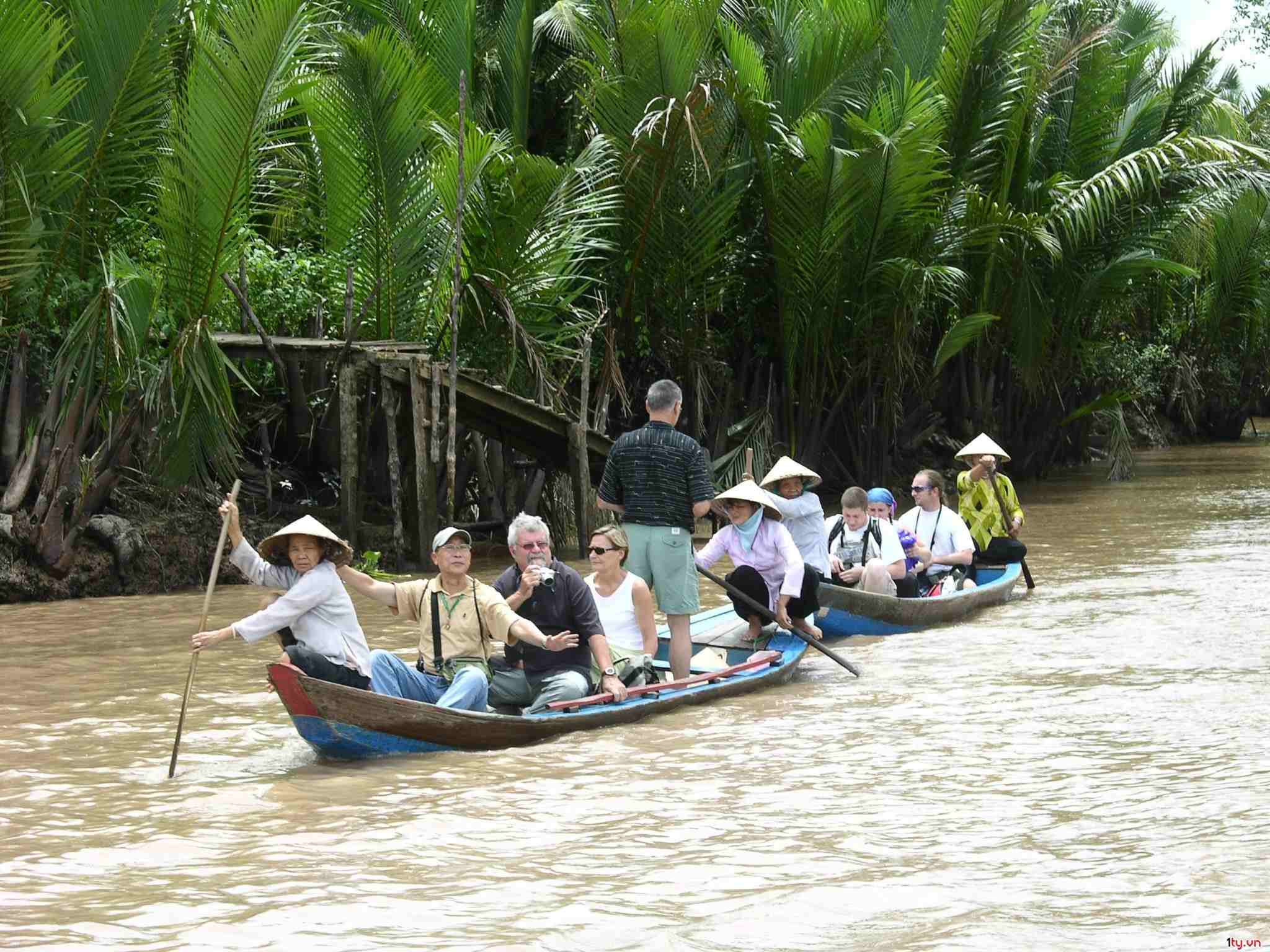 Afterwards a boat trip through the small canal – fully covered by the shadows of the coconut trees. Lunch will later be served right in the heart of the orchard garden.After lunch, taking a walk along the village and visiting a fruit garden. Enjoying the tropical fruit while listening to the sound of “Southern Vietnamese folk music” performed by the islanders.